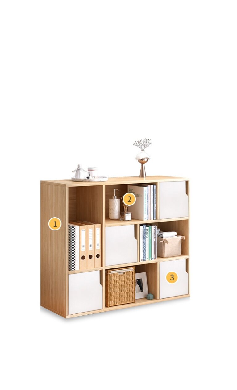 Estante Giratorio para Libros – Bambú -37x37x200cm – 7 niveles con puertas, color natural