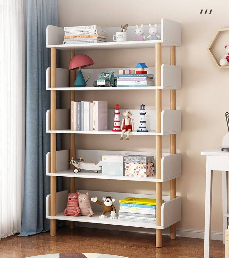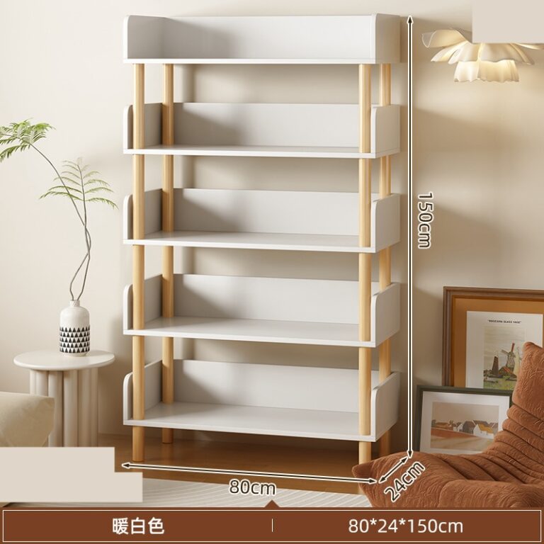 Estante para Libros – PVC y Madera – 80x24x150 cm – 5 niveles, blanco y madera natural