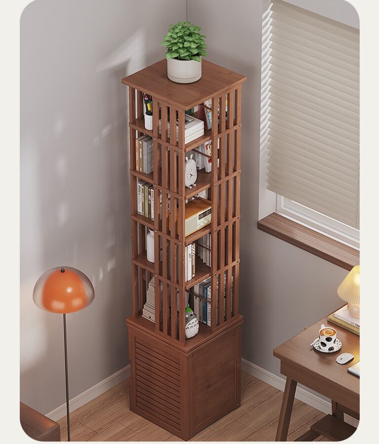 Estante Giratorio para Libros – Bambú – 37x37x200 cm – 7 niveles con puertas, color té