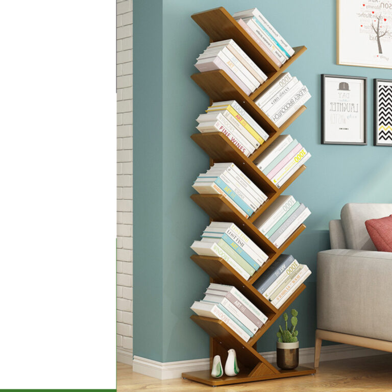 Estante para Libros con Forma de Árbol – Bambú – 158x44x20cm – 10 niveles, color té