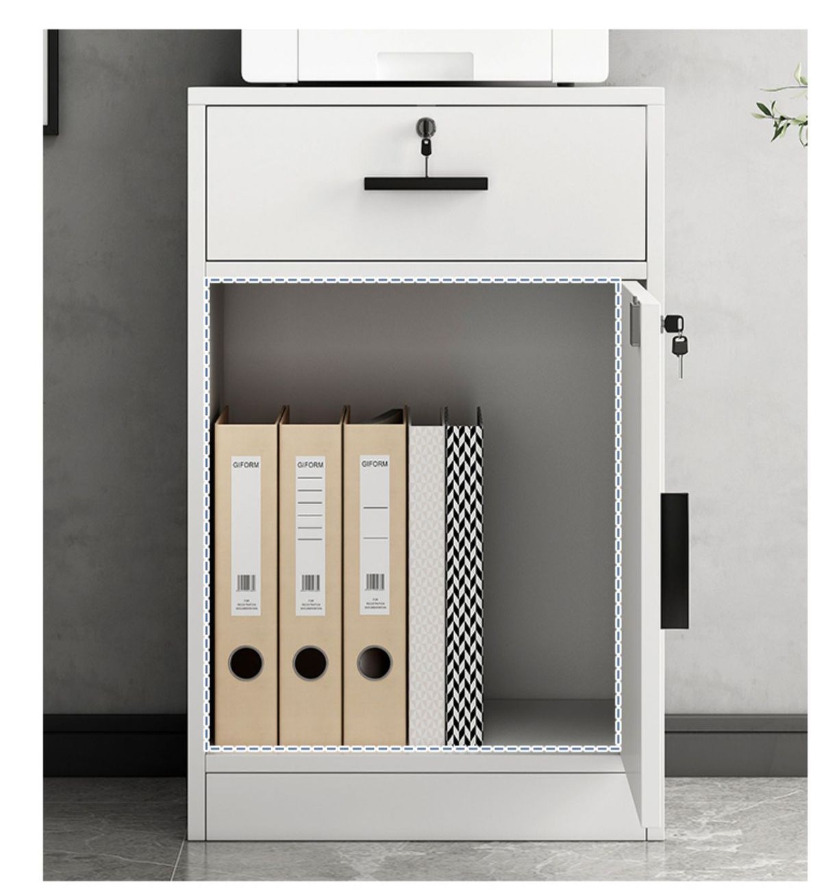 Archivador Oficina Blanco Melamina 65cm 2 Cajones 1 Puerta