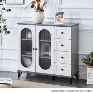 Cómoda con Barandilla – Melamina – 90x36x80 cm – 3 puertas, 1 cajón y gran capacidad