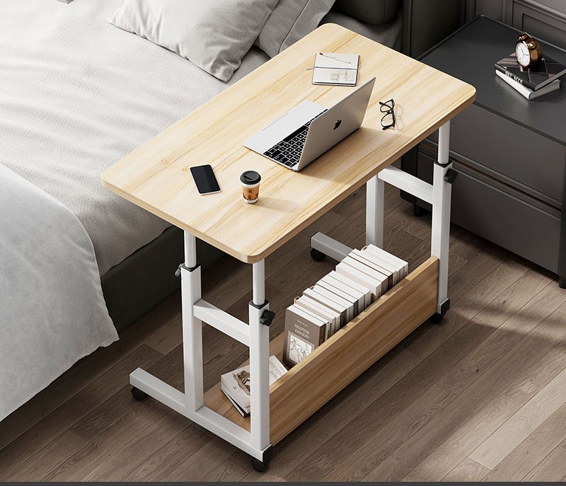 Escritorio de noche con altura ajustable y ruedas. Perfecto para usar la laptop en la cama o como mesa auxiliar. Diseño reforzado y superficie amplia. ¡Multiusos para tu hogar!
