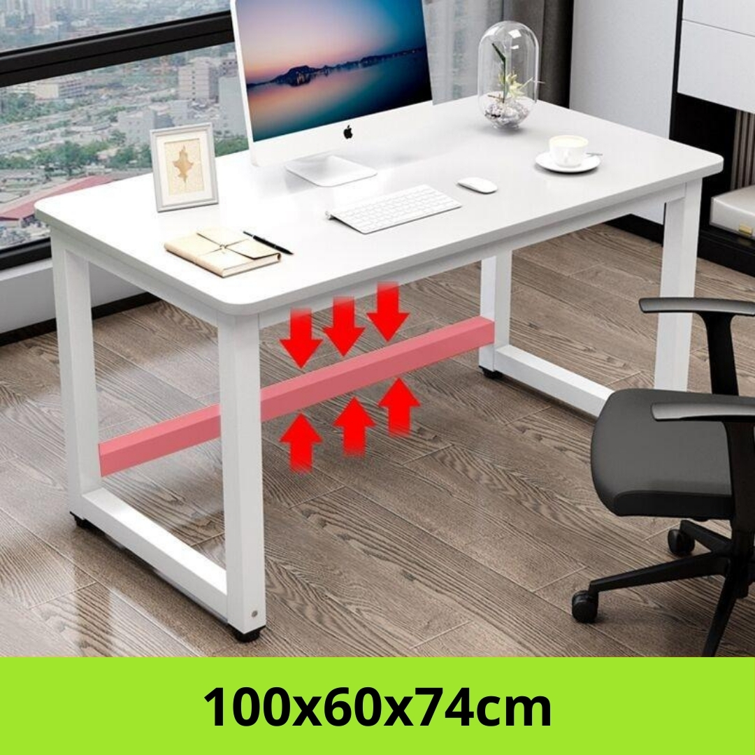 Escritorio económico y seguro, con esquinas redondeadas. Ideal para estudiantes o como puesto de trabajo secundario. Estructura de metal resistente.