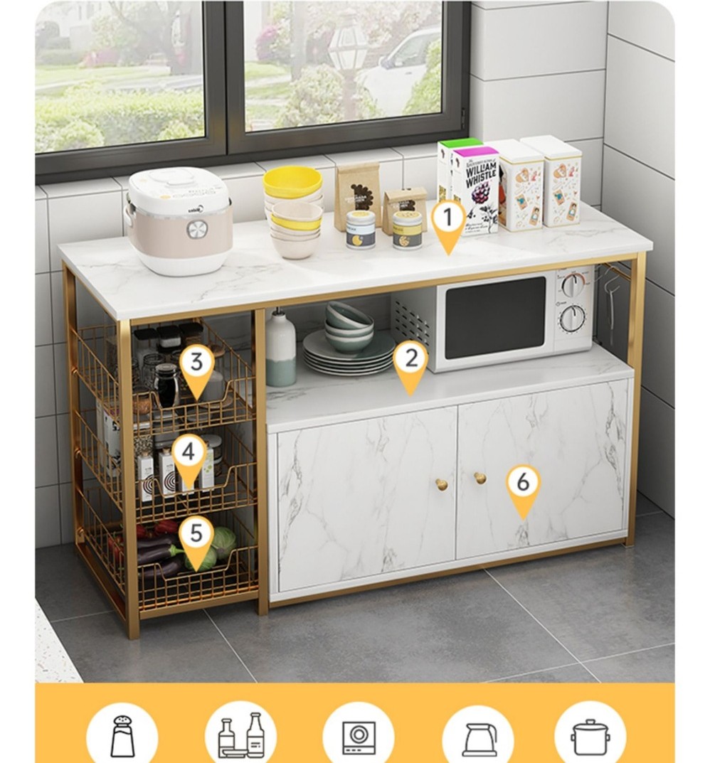 Estante Cocina Blanco Dorado Melamina 120cm Con Gabinete