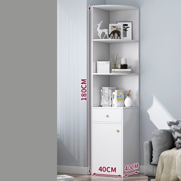 Ilumina tu dormitorio o sala de estar con este estante de esquina en blanco cálido. Su diseño compacto con múltiples compartimentos y un cajón es ideal para organizar libros, decoración o productos de belleza, maximizando cualquier espacio.