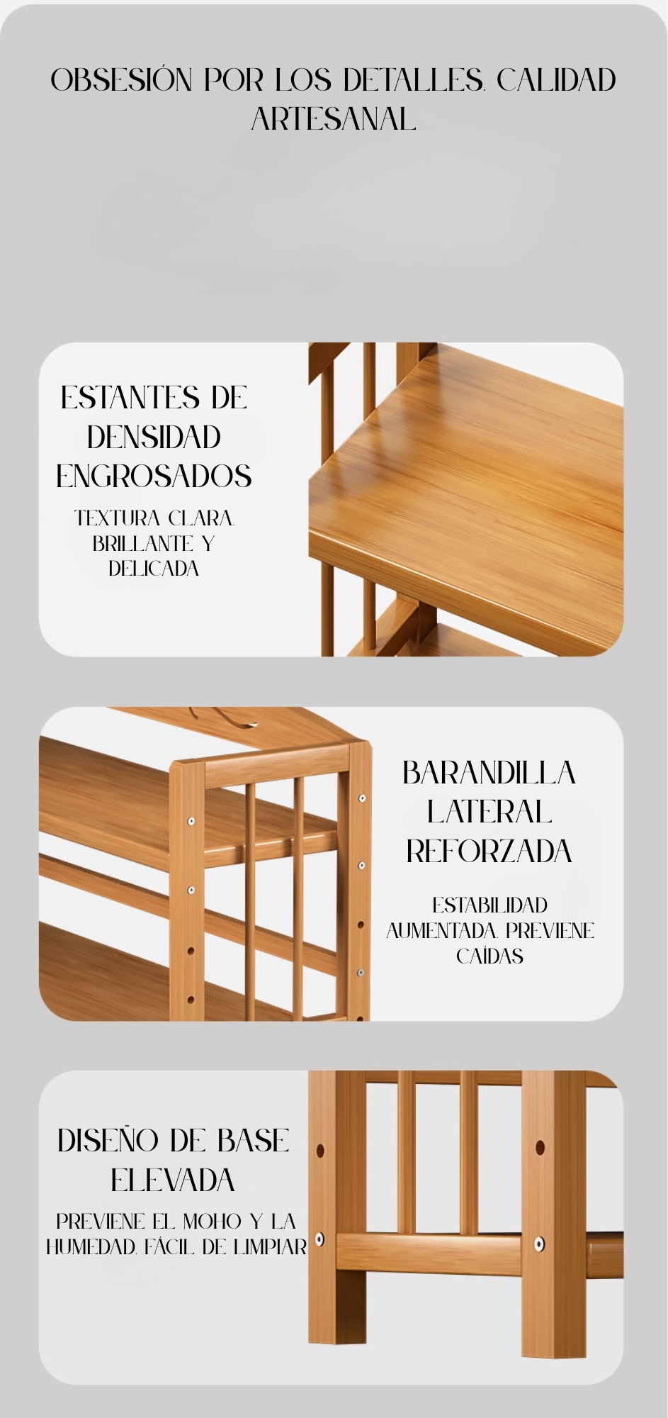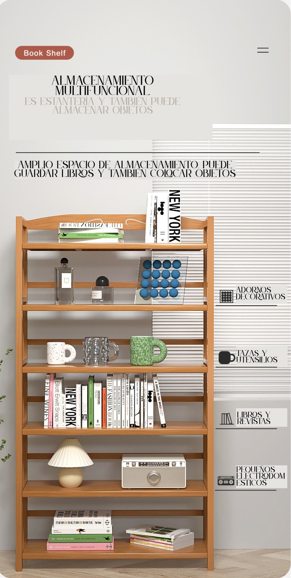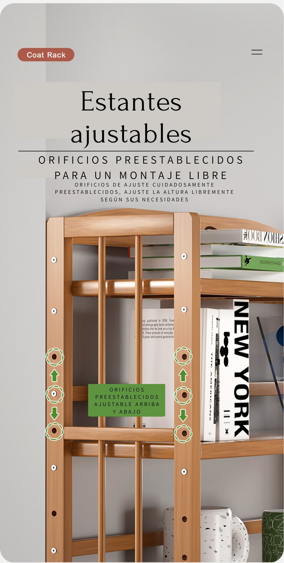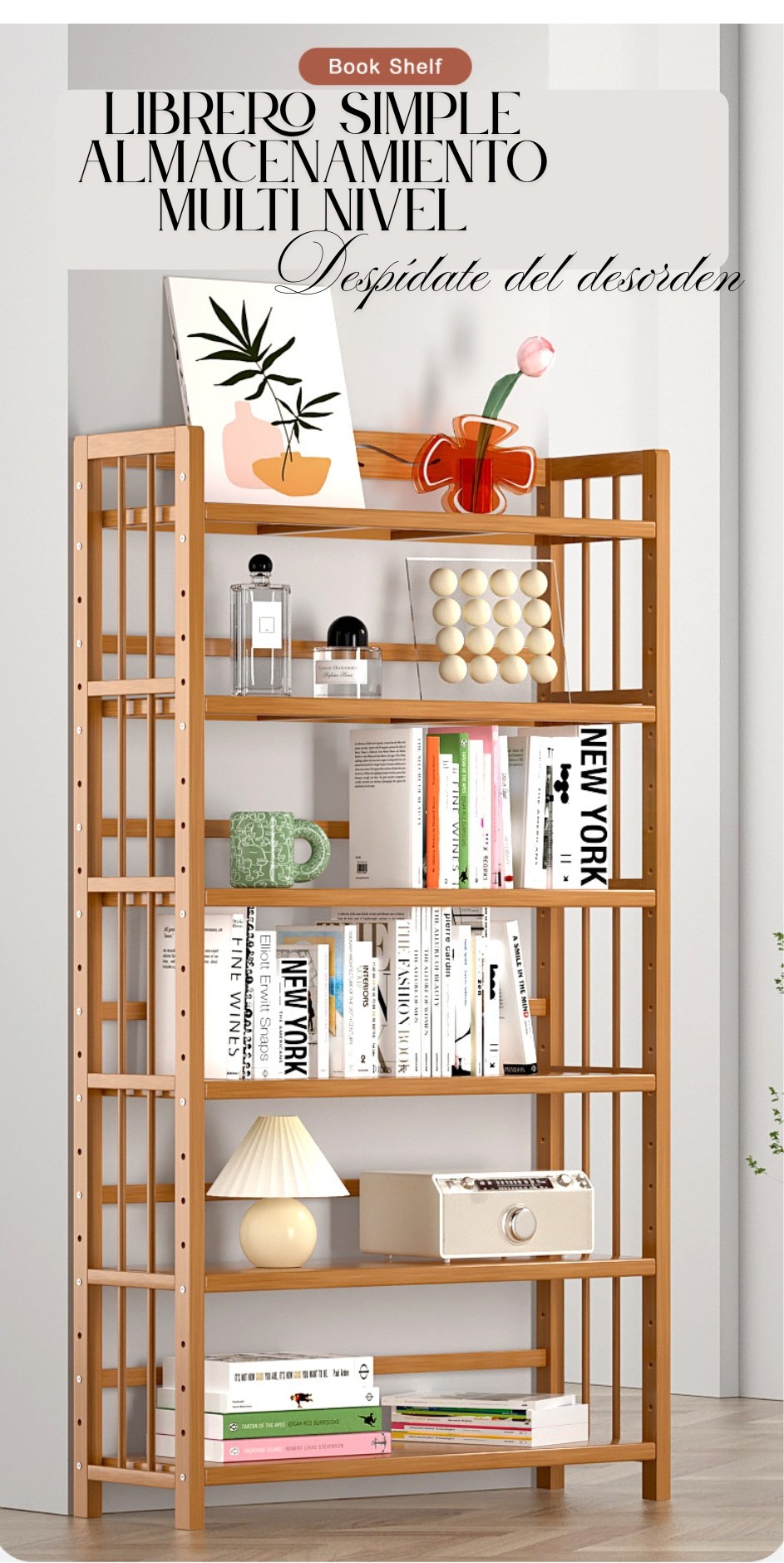 Respira naturalidad en tu estudio o salón. Este estante de bambú de 6 niveles es ecológico, resistente y aporta una calidez única, perfecto para organizar tus libros con un estilo zen y relajado.