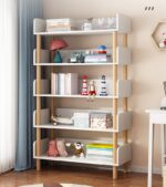 Exhibe tus libros y objetos favoritos con este estante ligero y moderno. Combina un acabado blanco cálido con detalles en madera natural. Sus 5 niveles ofrecen amplio espacio para organizar tu biblioteca o colecciones en el recibidor.