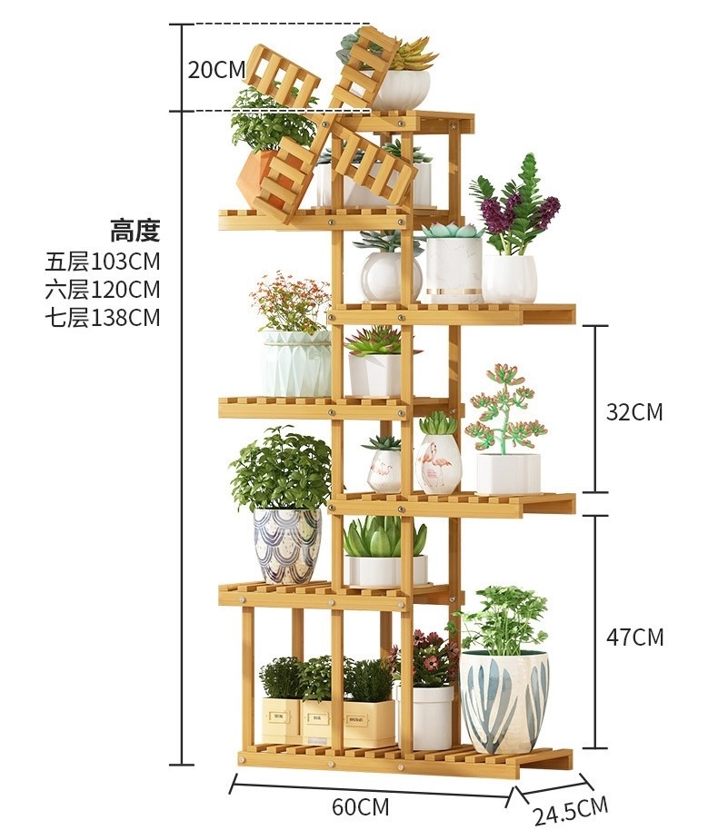 Estante para Plantas con Forma de Molinillo – Bambú – 138x60x24.5 cm – 7 niveles, color natural