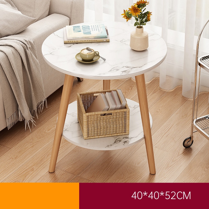 Mesa de Centro Redonda de Dos Niveles – Melamina y Metal – 40x40x52cm – Color blanco