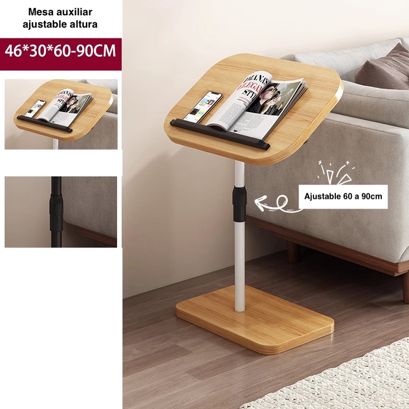 Inicio Mesas & Escritorios Mesas de Centro y Auxiliar Mesita Auxiliar – Melamina y Metal – 46×30 cm – Altura ajustable (60-90 cm), color madera natural