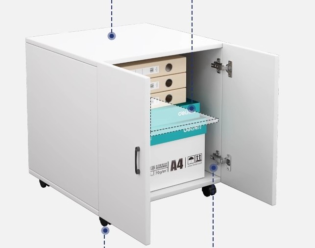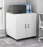Solución inteligente para tu oficina en casa o estudio. Este mueble para impresora no solo organiza tu equipo de forma estable, sino que sus ruedas te permiten reubicarlo con un simple empuje. La superficie en melamina blanca es resistente a rasguños y fácil de limpiar. Mantén tus cables y tintas ordenados en el interior, y disfruta de un espacio de trabajo limpio y funcional.