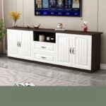 Mueble para TV – Melamina – 140x40x70 cm – 4 puertas y 2 cajones, color blanco y nogal