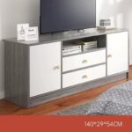 Inicio Estantes & Gabinetes Muebles TV Mueble Televisión Gris Melamina 140cm 29cm 54cm 4 Puertas