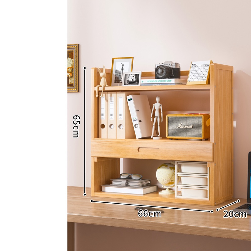 Inicio Estantes & Gabinetes Estantes Organizador de Escritorio con Cajón – Bambú – 67×21 cm – 3 niveles y cajón, color natural
