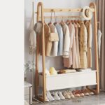 Perchero con Funda de Tela – Bambú y Tela – 100x40x162 cm – Color nogal
