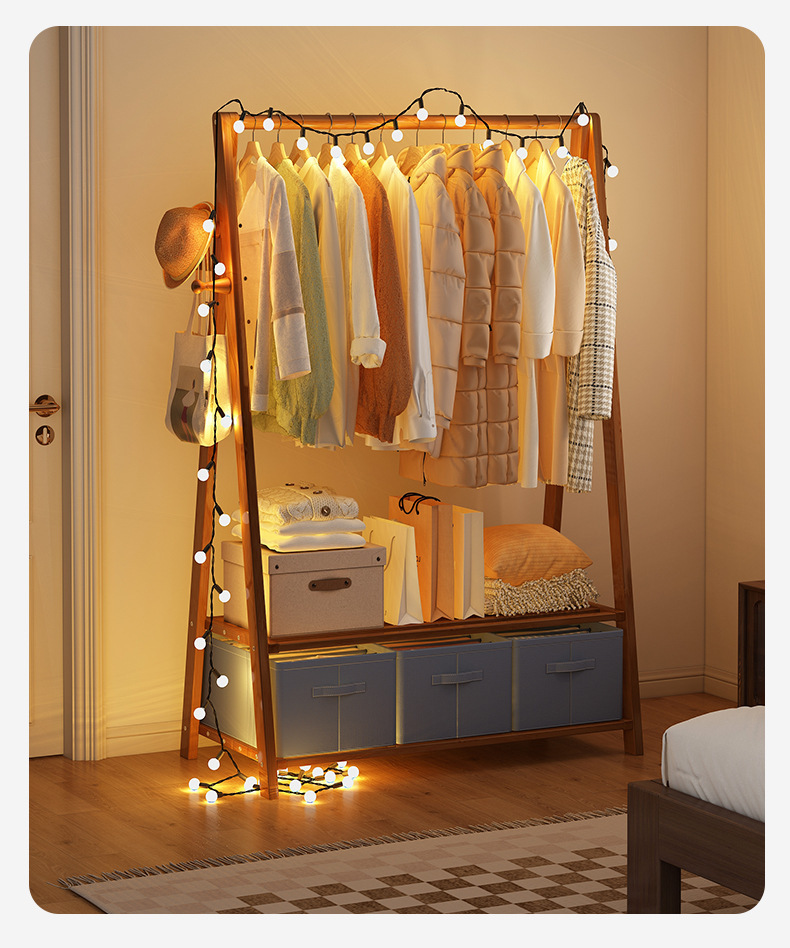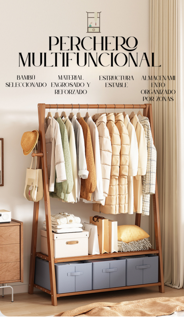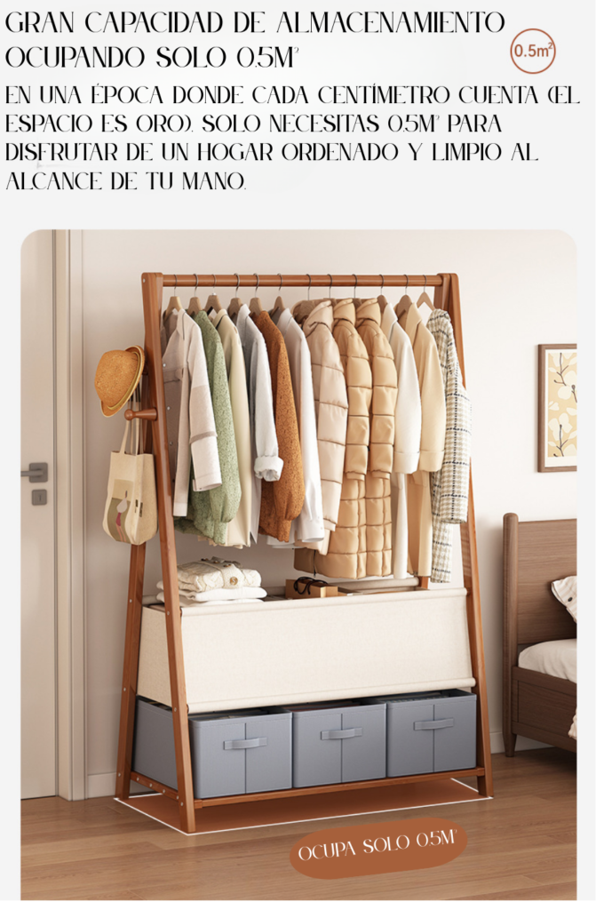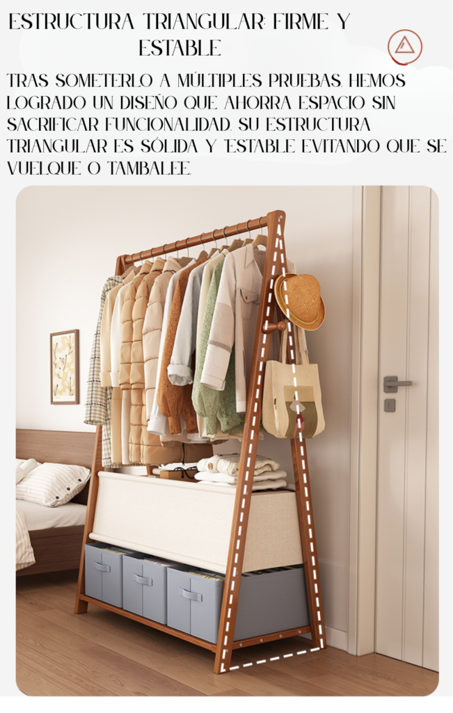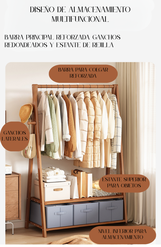 Perchero de bambú 115×45×155cm. perfecto para colgar chaquetas, bolsos y sombreros en la entrada. Resistente y fácil de montar, pensado para el uso diario.