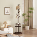 Perchero de bambú 40×40×164cm. añade comodidad en entradas pequeñas con diseño natural. Diseño sencillo y versátil, adecuado para diferentes ambientes.