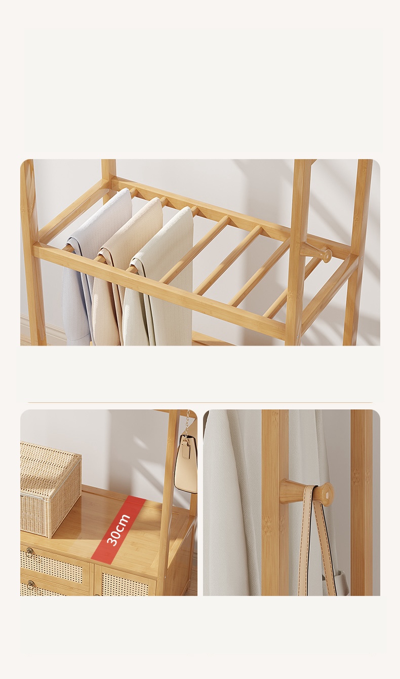 Perchero con Forma de Rama – Bambú y Tela – 100x30x165 cm – Doble nivel, color natural