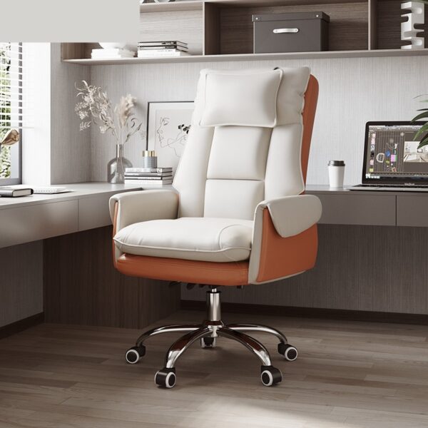 Ideal Para Oficina Y Dormitorio. Construcción En Cuero Sintetico. Características: Con Apoyabrazos. Color: Blanco / Naranja. Silla De Oficina