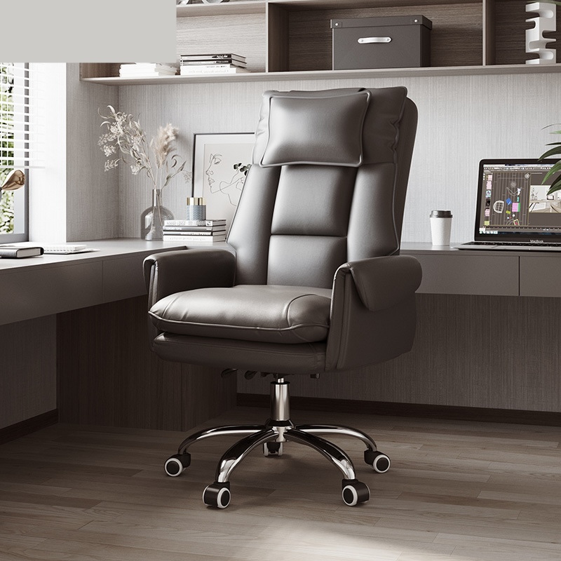 Silla De Oficina Cuero Sintetico Reposapies Gris Yt-518
