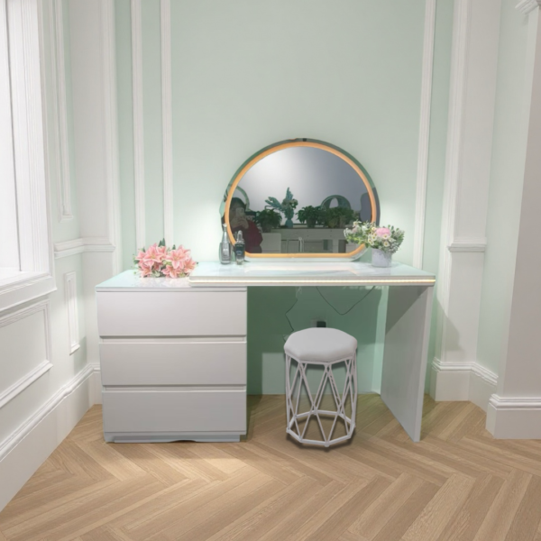 Variante de diseño del modelo 024, este tocador ofrece la misma funcionalidad práctica para tu rutina de belleza con una estética ligeramente diferente para adaptarse a tu gusto personal.