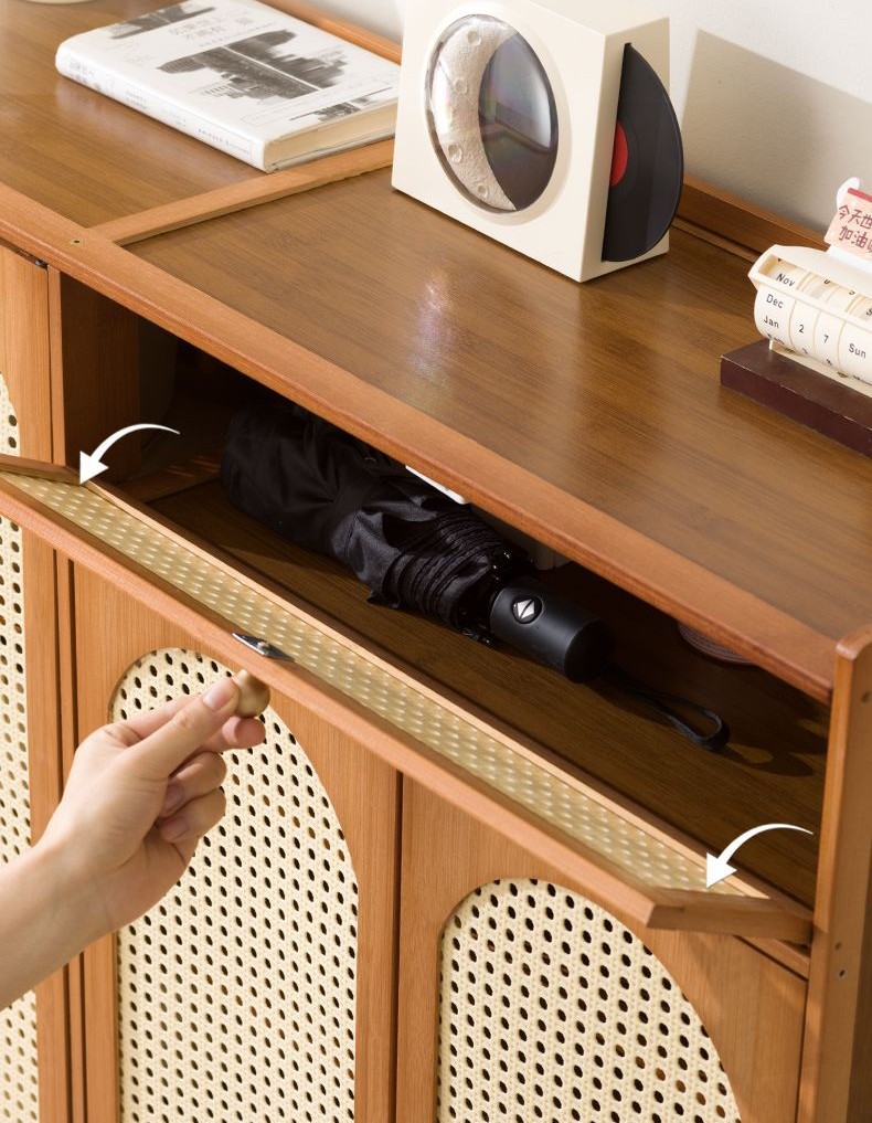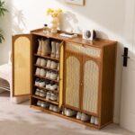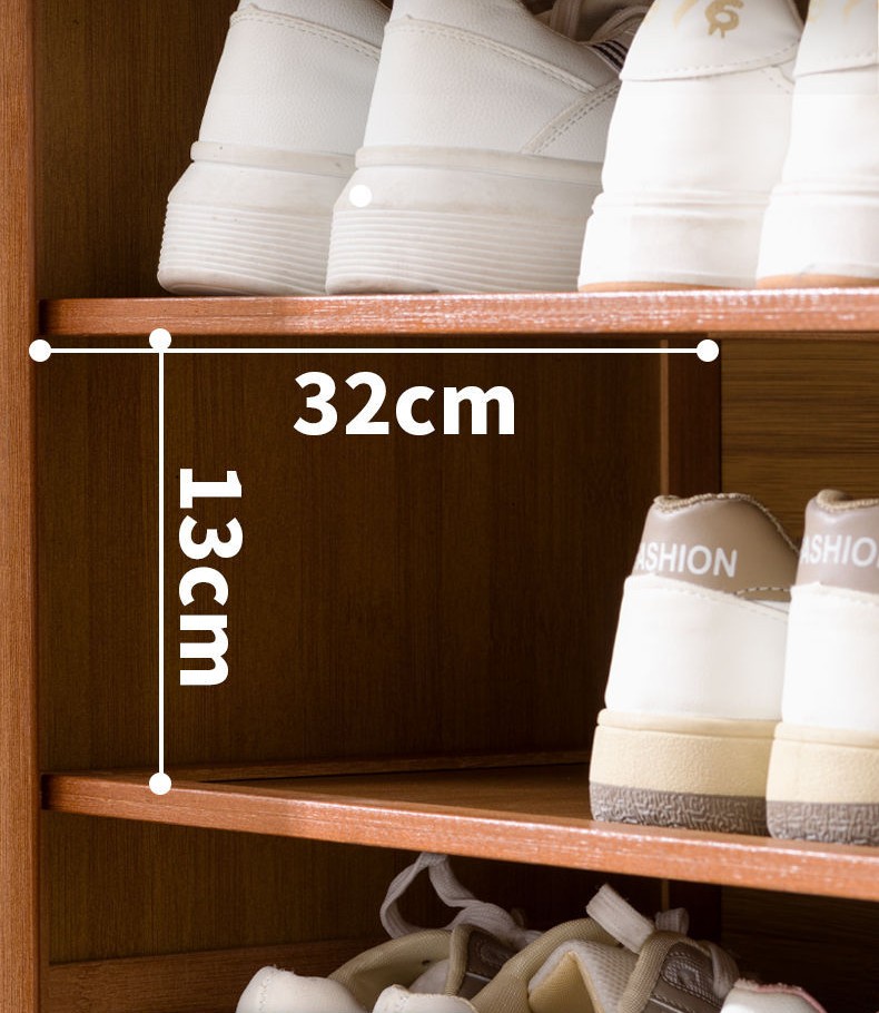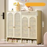 Zapatero de bambú 118×31×108cm. con puertas que protegen del polvo y espacio para zapatos de toda la familia. Diseño sencillo y versátil, adecuado para diferentes ambientes.