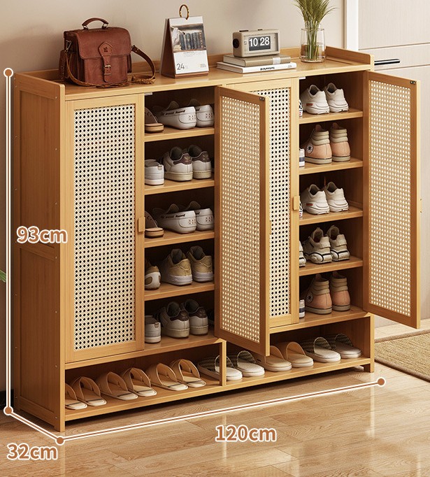 Zapatero de bambú 123×32×14cm cuatro puertas