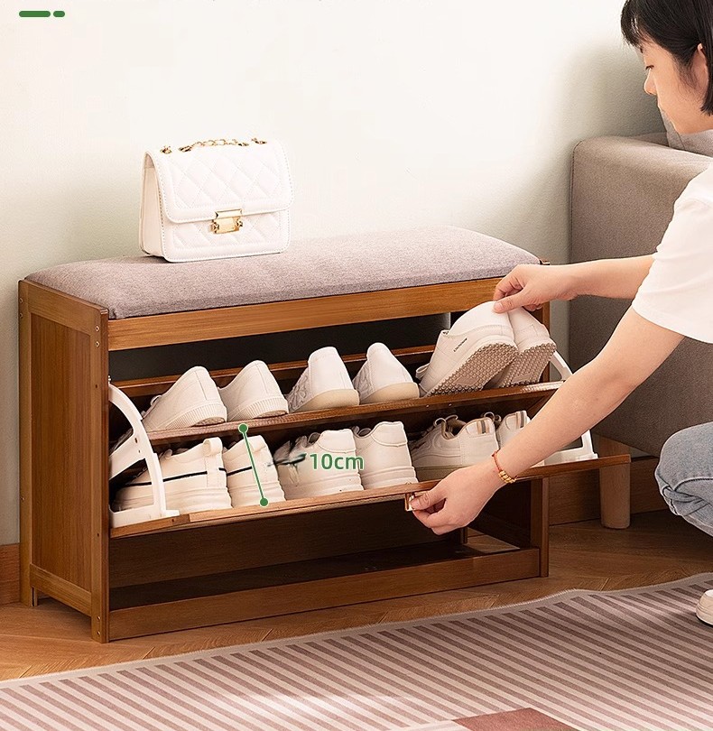 Zapatero de bambú 68×24×45cm. perfecto para mantener un recibidor limpio y organizado. Una solución económica y funcional para organizar tu hogar.